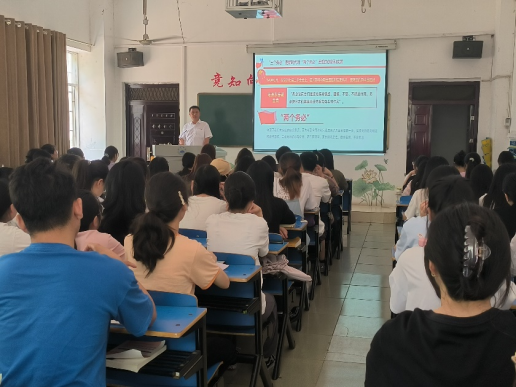 龚英军以“两个务必”的内容作为引入,围绕“三个务必”的伟大号召,结合历史和当前实际,深刻地阐述了“三个务必”的内容,从“不忘初心、牢记使命”、“谦虚谨慎、艰苦奋斗”、“敢于斗争、善于斗争”三个方面做阐述,希望同学们保持优良作风,以矢志不渝的执着把握自己的青春使命,脚踏实地、不断进取,永葆“赶考”的清醒和坚定,披荆斩棘、艰苦奋斗。