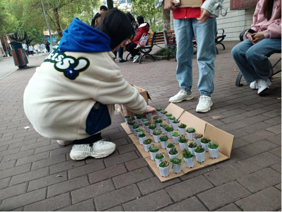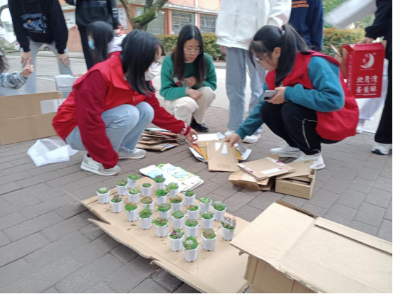 活动开始前,志愿者们通过海报以及到班宣传等来提高活动影响力,并定好置换规则、准备好进行兑换的绿植。活动当天,志愿者们提前到达欧风园集合,在负责人的带领下将活动用品准备好并摆放整齐。活动开始后,志愿者们主动向来往同学介绍活动内容并积极邀请同学们前来参与。活动中,志愿者一一分类清点好同学们用来兑换的纸壳和水瓶等,并统一放置于空旷处,保持活动场地的整洁。同时志愿者们也告知同学们可以兑换的绿植数,将其引领至绿植摆放处让其进行自主挑选。活动后,志愿者们负责清理活动场地、归还所借的桌椅和清扫工具、清点废品数量并将回收的废品卖给废品回收站。
