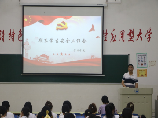 为做好考试安全月和期末安全工作,6月11日,williamhill中文在华阶一召开期末学生安全工作会议,党委副书记龚英军、学生科科长胥杜鹃、团委学生会和各班班干干部共同参加。