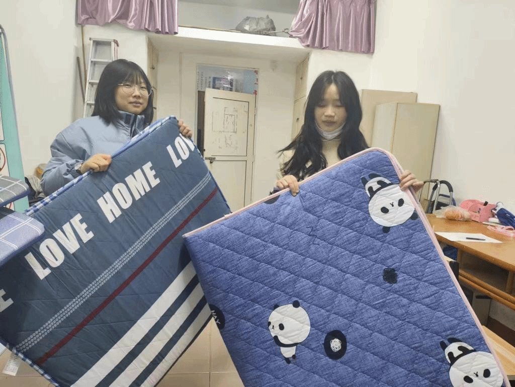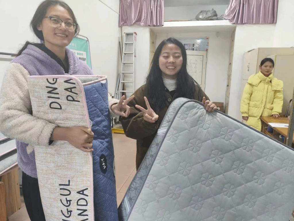 丝丝关爱情,拳拳育人心。辅导员们深入宿舍将暖心床垫送到同学们手中,并叮嘱大家最近天气变冷,流感病毒进入高发期,一定注意防寒保暖。鼓励大家奋发向上,心怀感恩。并深情寄语,希望同学们做积极向上、自信昂扬、豁达开朗的奋进者,做知恩报恩、传递温暖、提高本领的践行者;做党和政府、学校资助政策的宣传者。
