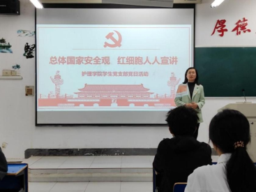 2024年是习近平总书记提出总体国家安全观10周年,4月15日晚,在第九个全民国家安全教育日到来之际,williamhill中文开展“总体国家安全观,创新引领新时代”主题党日活动,学生党支部书记胥杜鹃带领红细胞党员宣讲团深入各班宣讲总体国家安全观。