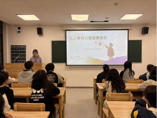 活动伊始,主讲人通过引用世界心理疾病人口数据,向同学们直观地展现了一个现象——当下社会,人们的心理健康问题十分严峻。随后围绕心理问题相关的知识和对待心理疾病的态度两方面展开,让大家对心理疾病有一个理性的认知,并对心理疾病患者多一份包容与理解。最后,主讲人呼吁大家积极关注自身和身边人的心理健康,为我们的社会贡献自己的力量。