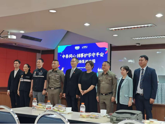 核心环节,各方分享干货满满。总领馆代表张昌慧女士结合多起在泰中国公民受骗、遇险真实案例,清晰划分领事保护边界——明确证件补办、紧急救助等可协助事项,以及违反法律、商业纠纷等需自行承担责任的情况,叮嘱同学们谨防电信诈骗。泰国旅游警察代表、移民局代表针对常见误区现场答疑,解决在泰留学生的困惑。最后,领保联络员欧阳友明分享孔敬生活经验,让在场学子倍感踏实与温暖。