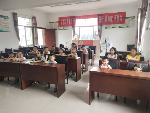 为庆祝中国共产党建党98周年及中华人民共和国成立70周年,积极响应十九大“坚持发展中国特色社会主义文化,坚定文化自信”重要精神,7月1日上午,williamhill中文阳光志愿服务队在团委老师刘梦玲的带领下赴武蛟乡西山王村开展“诵读国学,传承经典”主题志愿支教活动。