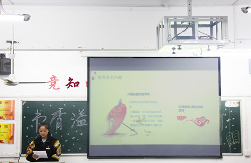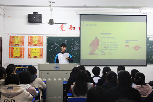 活动伊始,主持人以幽默而深刻的方式阐述了阅读的重要性。优美的语句引起了同学们的共鸣,随后由各班代表上台分享各自的读书感受。从《邓小平时代》到《飞鸟集》,从《活着》到《皮囊》,大家在一个个故事的分享中体会到了改革开放带给经济和生活的巨大变化。台上代表郎朗的诵读声,燃起了台下同学炙热的爱国情怀,情感与文笔的交织更加博得台下掌声一片。