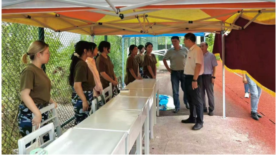 训练期间,校、院领导多次深入训练现场,脚步穿梭在各个方阵之间。威廉官网中国官方副校长雷志强亲临williamhill中文军训现场,看望慰问正在参加军事训练的新生同学及伤病连的同学,并向承训教官和带训助导致以诚挚问候。