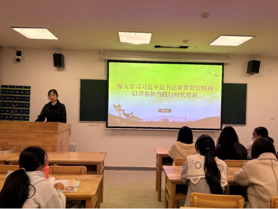 活动中,各班主讲人以新闻联播视频为载体,生动解读贺信精神的核心要义,结合中国式现代化建设,阐明青年的使命——广大青年要以挺膺之姿勇担历史重任,书写青春担当。演讲结束后,在场人员掌声雷动,A2511班王海同学在发言中说道:“作为护理学子,我们应把个人理想融入国家发展,以专业服务人民健康,用实际行动践行‘请党放心,强国有我’的青春誓言。”