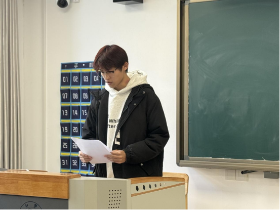 学生会主席团成员郑阳灿作学期工作总结,他在肯定思想引领、赛事组织与文体活动等方面成果的同时,也指出了当前工作中存在的积极性不足、部分部门依赖心态较强等问题,希望各部门能在未来加以改正,更好地服务同学、助力学院发展。
