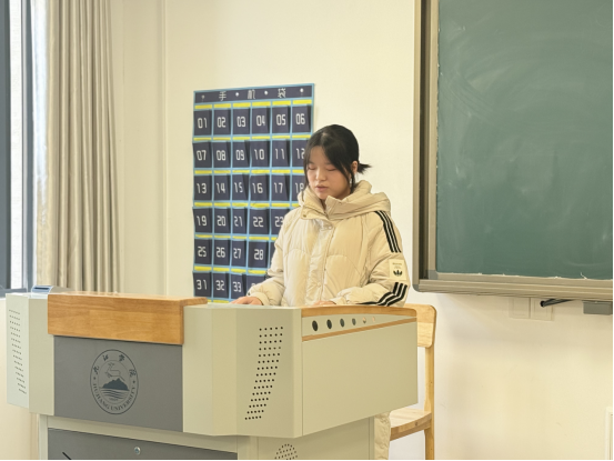 获奖学生代表A2512班肖雅欣同学分享了自己在挑战中成长、在协作中进步的体会,同时表达了对学院培养与老师指导的衷心感谢,并对获奖的同学们表示祝贺,号召同学们以榜样为镜,继续发光发热。