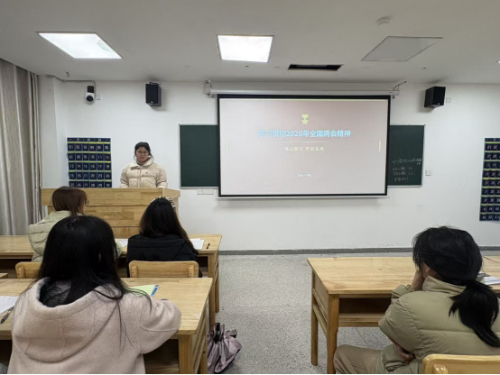 在A2511班现场,主讲人唐三琴同学借助视频资料,围绕2026年全国两会核心议题展开讲解,重点解读了“十五五”规划蓝图、中国式现代化及新质生产力的内涵。随后,她引导同学们结合专业学习,围绕“如何将个人奋斗融入民族复兴”展开讨论。李雨晴同学表示,应进一步坚定理想信念,以更加饱满的热情投身学习与实践,努力成长为堪当大任的新时代青年。现场氛围浓厚,同学们认真聆听,在交流中加深了对2026年全国两会精神的理解。