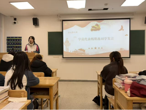 学员代表、A2514 班杨斯逸同学上台发言。她结合自身学习经历与对青年责任的理解,深情表达了加入青马班的初心与奋进决心,郑重承诺将倍加珍惜此次学习机会,在理论学习中淬炼思想,在实践锻炼中增长才干,努力成长为有理想、敢担当、能吃苦、肯奋斗的青年骨干。