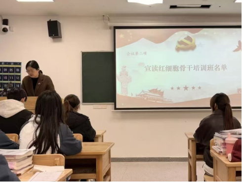 周海霞宣读本届“红细胞”青马工程大学生骨干培训班学员名单,标志着青马班全体学员正式集结。