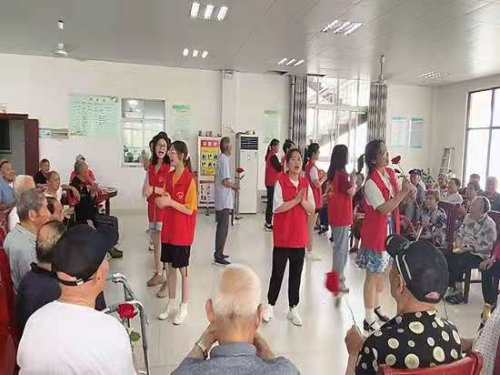 文艺表演暖民心。在开展义诊活动的同时,表演小分队的大学生们积极做好各项准备工作,以热情饱满的精神状态,为庐山福利中心的老人们献上了一场极具专业水准的倾情演出。歌曲《唱支山歌给党听》《歌唱祖国》《党啊,亲爱的妈妈》,歌伴舞《军港之夜》,诗朗诵《历史的一页》,精彩纷呈的表演获得了阵阵掌声。最后,由全体大学生志愿者及现场老人一起合唱的《没有共产党就没有新中国》把演出气氛推向了高潮,也与这座“政治名山”的历史记忆产生了强烈共鸣。