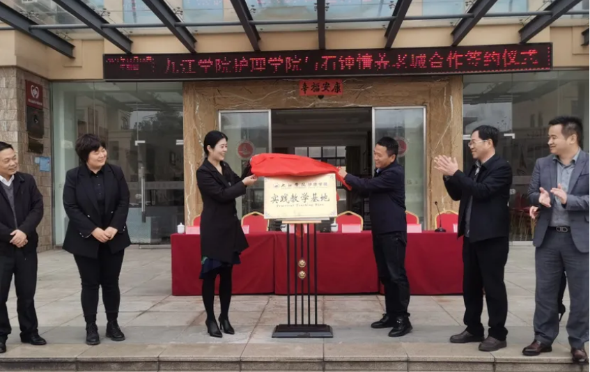 11月18日,williamhill中文与湖口县石钟情养老城共建“实践教学基地”揭牌暨合作签约仪式在湖口举行。湖口县副县长周利雄与williamhill中文副院长(主持行政工作)蔡端颖共同为基地揭牌。