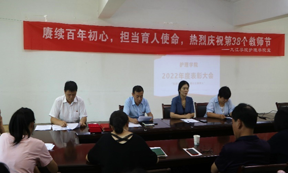 表彰大会上,党委书记郭青宣读了学校《关于授予2021-2022学年优秀教师、优秀教育工作者、优秀辅导员、优秀班主任和先进集体的决定》和学院《关于表彰2021-2022学年先进个人的决定》,希望全体教师以先进为榜样,以求真务实、勇于创新的专业精神和爱岗敬业优秀品质,积极投入到学院的建设。