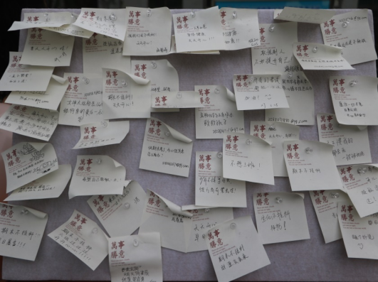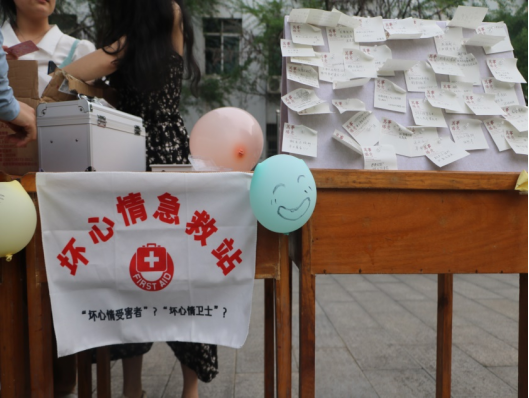 活动丰富多彩,引人注目。同学们驻足停留,怀着探索的心理来到了坏心情急救站,在青年志愿者的呼吁与引导下,同学们开启了“心灵释放之旅”。通过留言的方式在坏心情消除板上写下烦恼与邮箱地址,释放出自己的情绪与困扰。“坏心情卫士”通过邮箱的指引发送暖心话语,发放“坏心情急救包”,包括镇静胶囊、医用口罩、卡通创口贴、微笑贴纸和开心糖果等,采取刮刮乐的形式为同学们带来好运。在初夏微启的五月,同学们敞开心扉,打开心灵的窗户,一同拥抱健康。