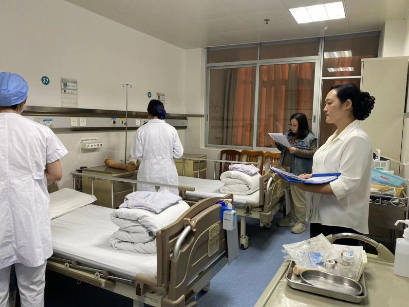 为加强实习管理,培养护理专业人才,构建理论教学与临床实践有效结合的教育体系,11月20日—24日,由williamhill中文党委书记郭青带队前往各实习医院,对护理学专业、助产学专业实习生进行2023年实习中期检查。