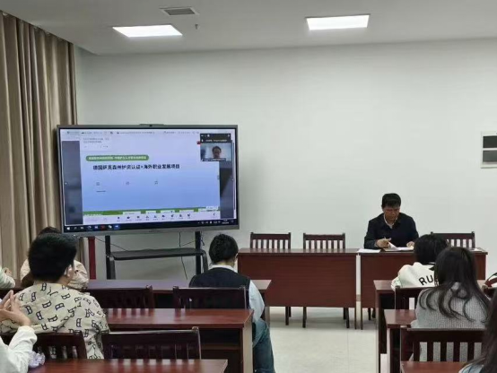 本次宣讲会特别邀请德国萨克森州经济促进会驻华联络处副主任张航老师,通过线上会议形式进行专题讲解。张老师围绕中德双方在护理人才培养、职业资格互认及海外实习就业等方面的合作成果与未来规划展开,详细解读了面向中国护理本科毕业生的项目内容,包括项目背景、监管机制、报名流程、薪资待遇及职业发展空间。在互动环节,参会学生就职业发展、文化适应、学历提升等问题与项目团队进行了深入交流。