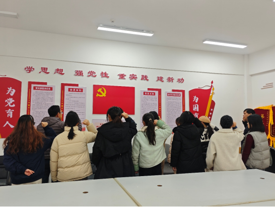 宣誓前,支部集体学习了习近平总书记关于推进党的自我革命“五个进一步到位”的重要要求,全体党员深受教育和启迪。这一重要要求深刻阐述了新时代新征程上党进行自我革命的总体要求、关键环节和实践路径,为青年学生党员深化对党的自我革命的认识、持续推动全面从严治党向基层延伸提供了根本遵循。
